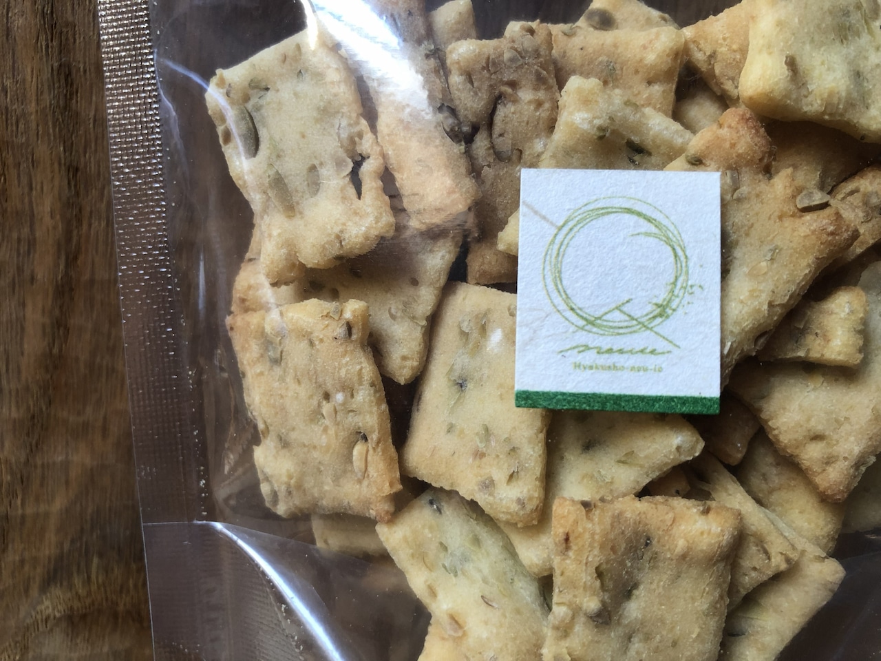 百姓のいえで有機栽培した天日干しもち米に黒神豆(小粒青豆)と塩を練り込んで昔ながらの工程で焼き上げたあられです。塩は完成までに約 1ヶ月かけて製造される粟国の塩を使用しています。黒神豆は東北地方で昔から栽培されてきた小粒の青豆です。ほんのり塩加減で噛むほどにお米の甘味や豆の風味、サクサクとした食感をお楽しみいただけます。小腹が空いたおやつタイムやドライブ・アウトドアのお供にもおすすめです。