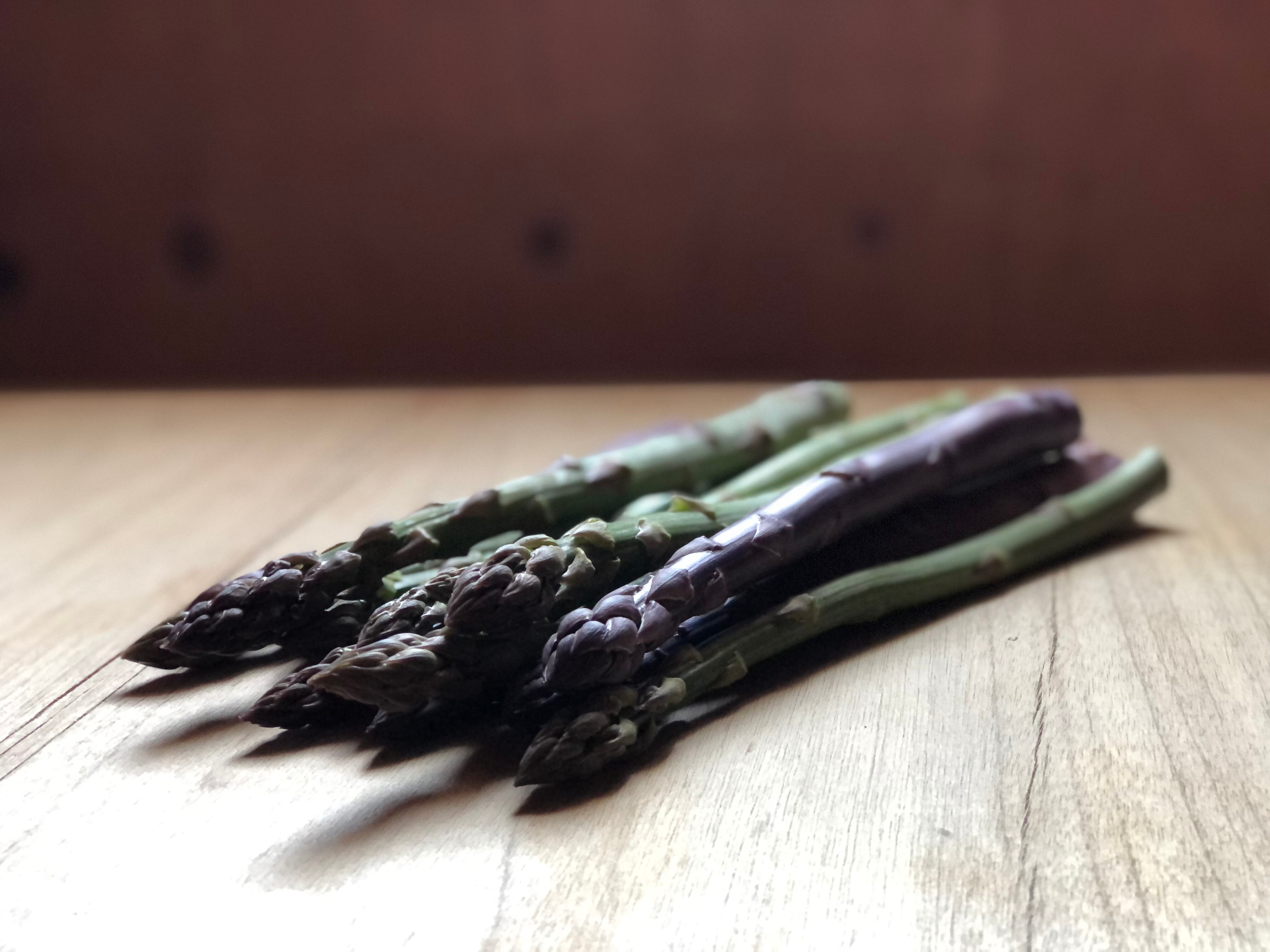 百姓のいえのアスパラガスは、有機JAS認証を受けた圃場で栽培しています。自家鶏ふんや米ぬかなどを肥料として使用し、畑の表面にはもみがらや落ち葉などを敷き詰め、乾燥防止や草対策だけでなく、有用な微生物が活発に働ける環境づくりを心がけています。昼夜の寒暖の差が大きい当地で育ったアスパラガスは、香りと旨みが豊かです。グリーンアスパラをメインに、パープルもミックスしてお送りいたします。